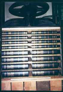 The last part of the binding process involves putting the finished cased in books into the press between brass edged boards to form the hinge