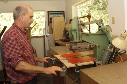 Large foil stamping runs are done on the pneumatic stamping machine.
